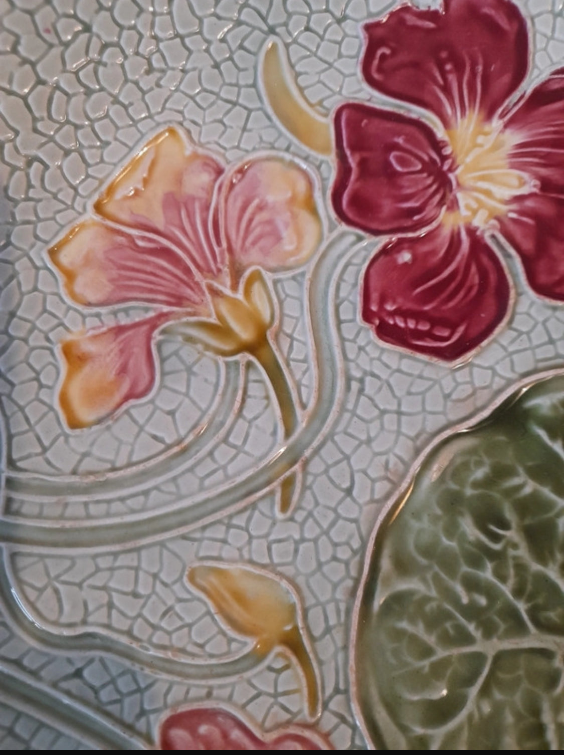Antique Majolica Art Nouveau, Jugendstil Liberty schaal