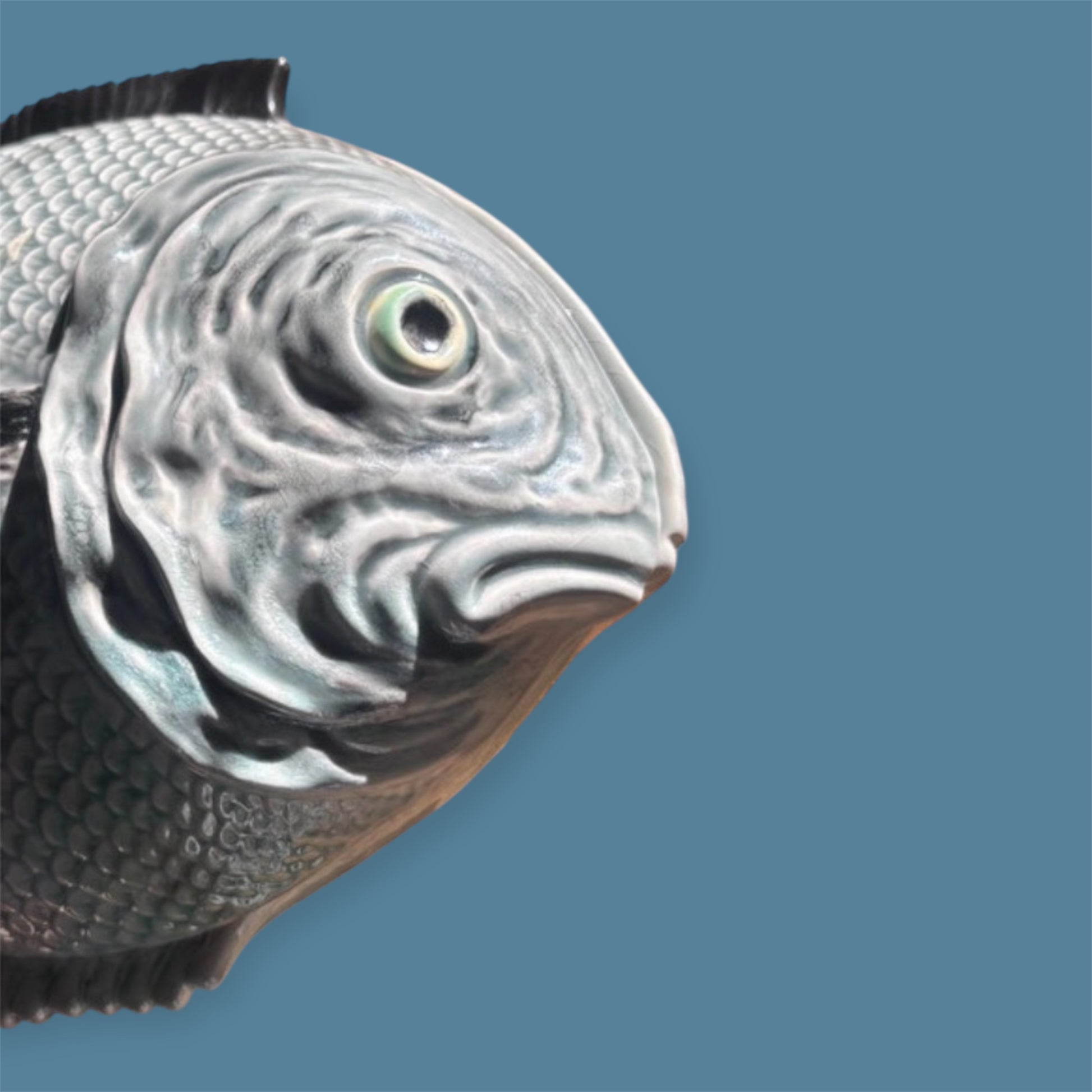 Antique majolica fish tureen Bordalo Pinheiro Portugal faience