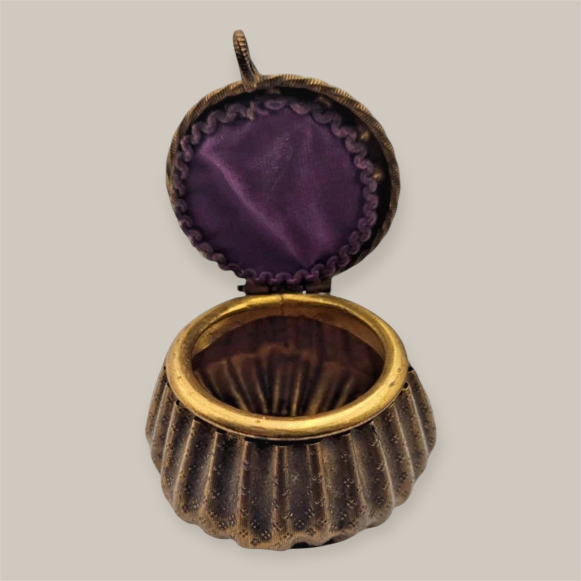 Gebruik: deze doosjes werden vaak gebruikt voor snufjes tabak, poeders of pillen en waren ook geliefde souvenir- of sierobjecten. De geribbelde wand en geponste decoratie met stippen en kleine patronen zijn typisch voor de late 19e eeuw.
