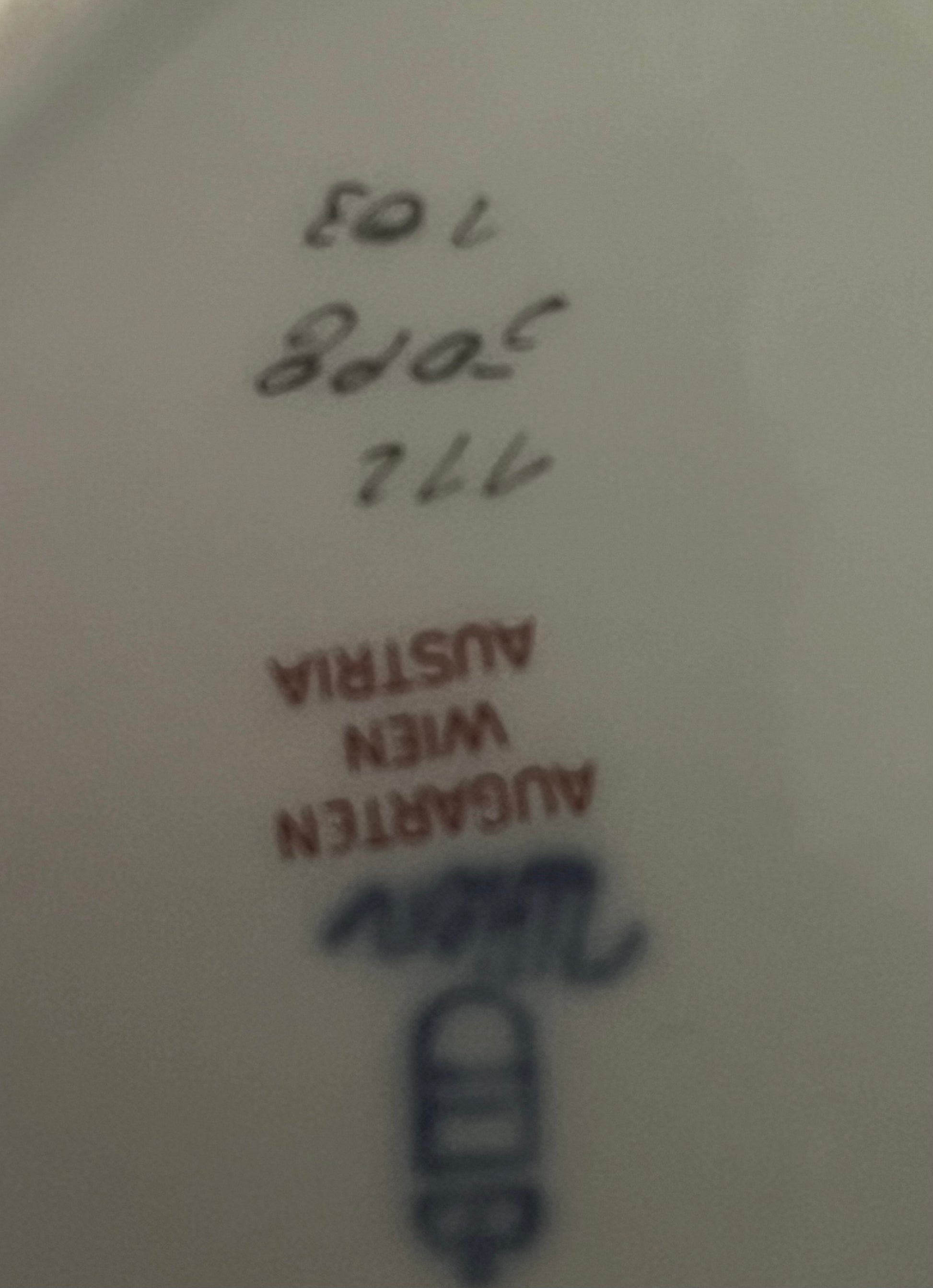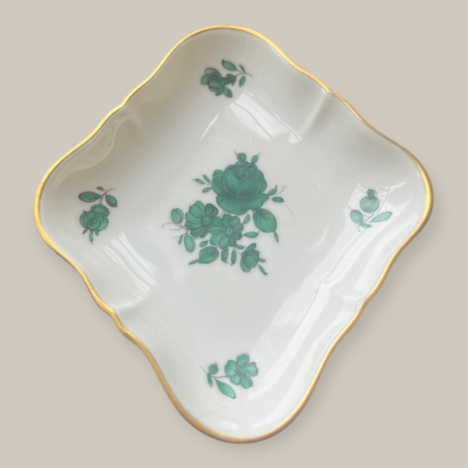 Klein porselein schaaltje in de vorm van een ruit met Maria Theresia decor. Van het prestigieuze porselein huis Augarten uit Wenen. Goudgerand maakt dit klassieke stuk helemaal af.