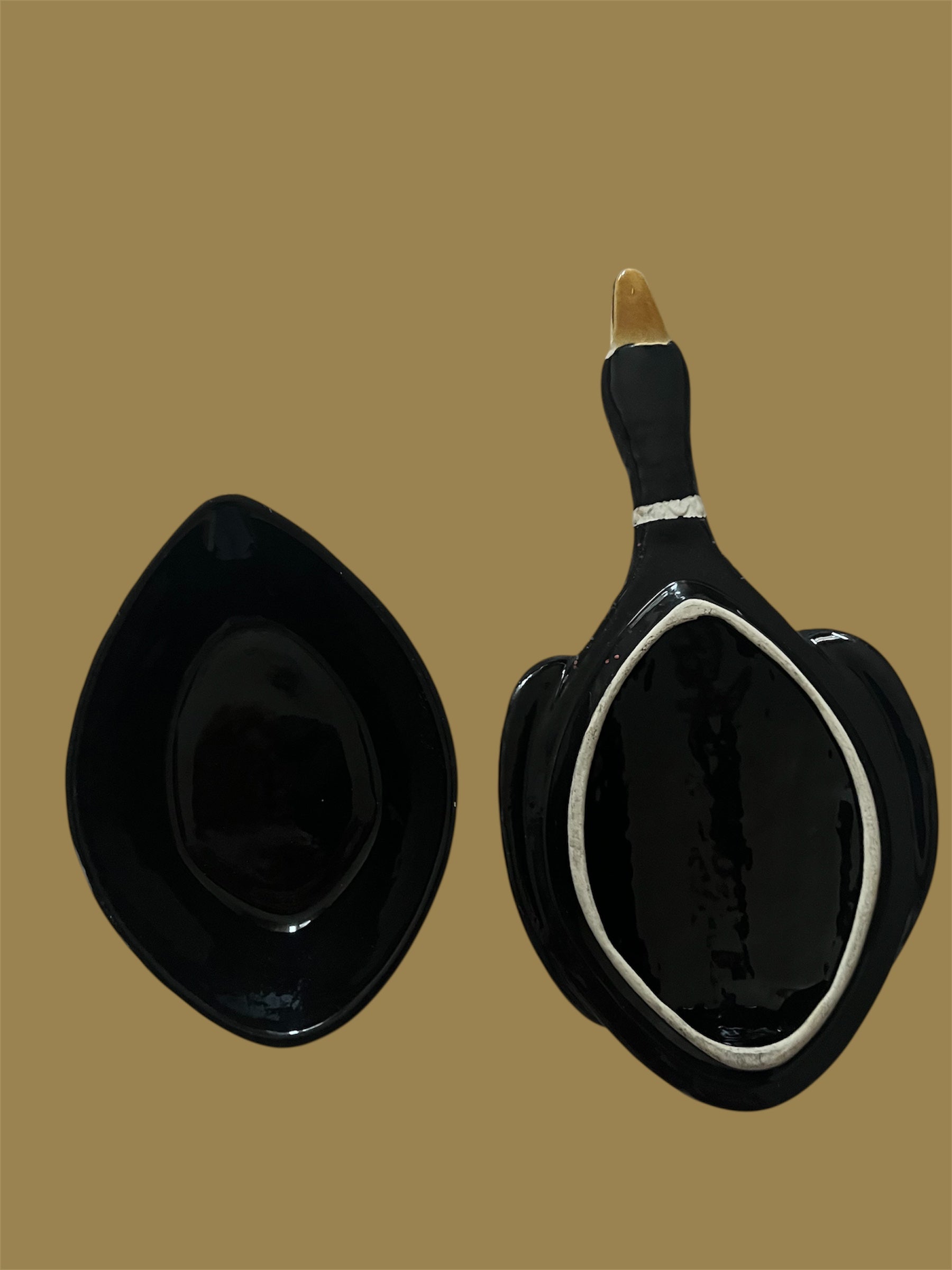 Vintage eend in vlucht, zeldzame pate vorm uit de collectie van Caugant. De terrine is als nieuw, perfect voor de verzamelaar.