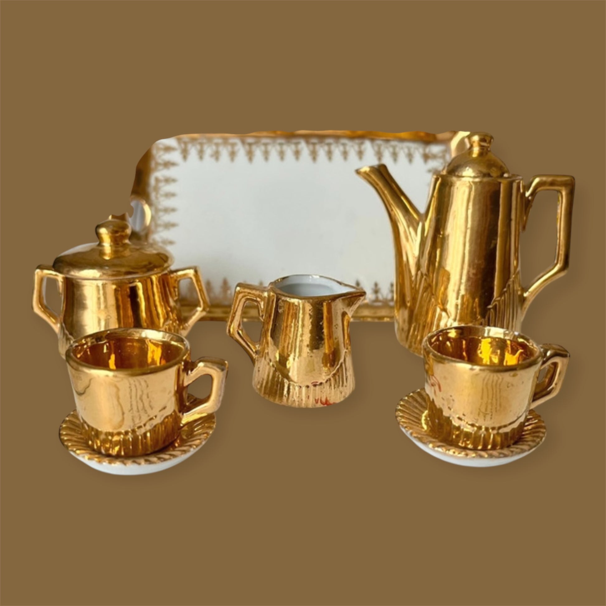 Zoals je kunt zien, bestaat het antieke miniatuur thee- of koffieservies uit: