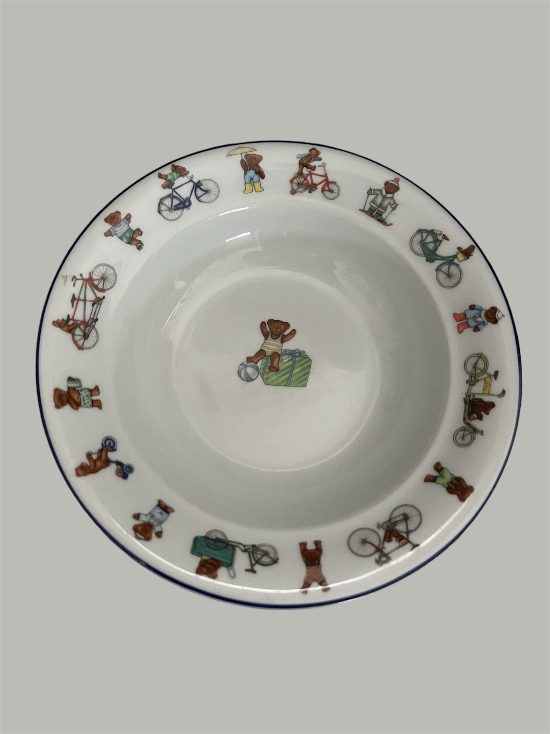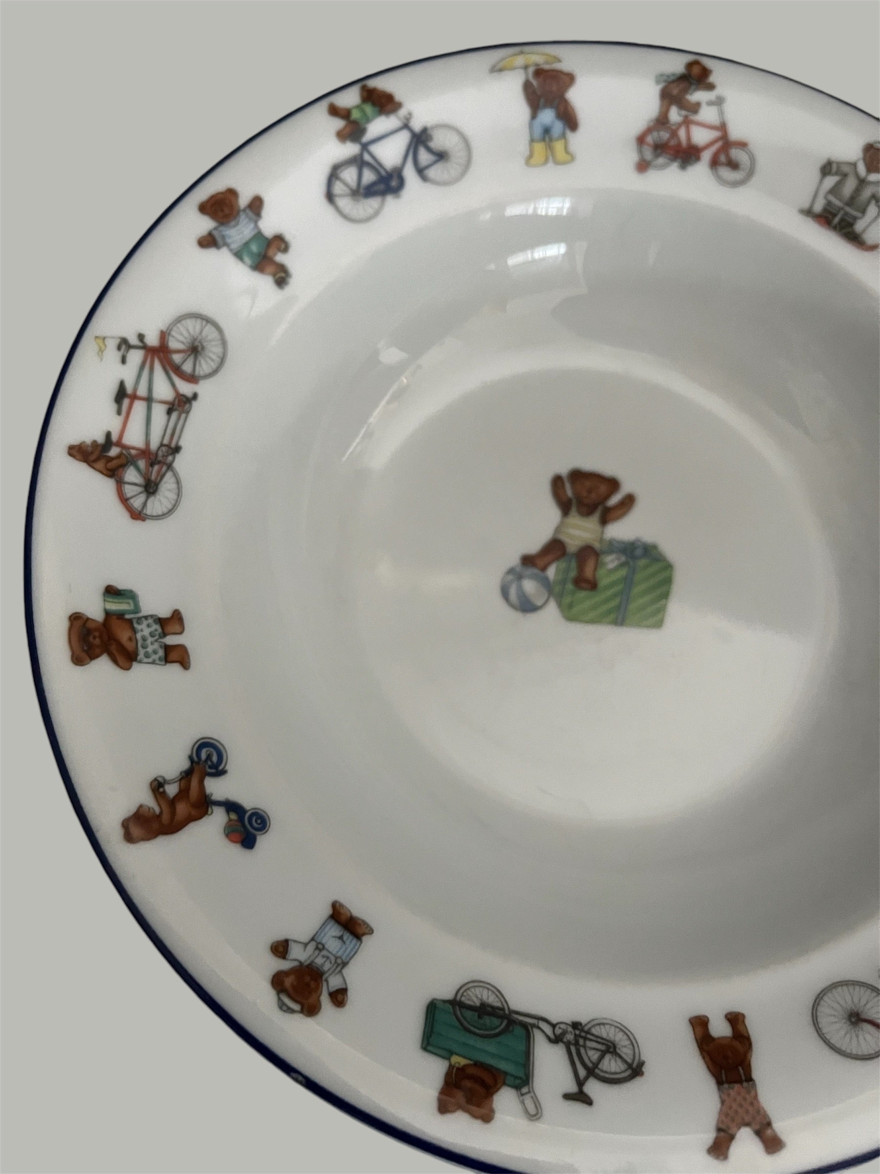 "Julius" series designed by Finn Næss Schmidt. With Teddy bear decoration and blue rim. Great condition.