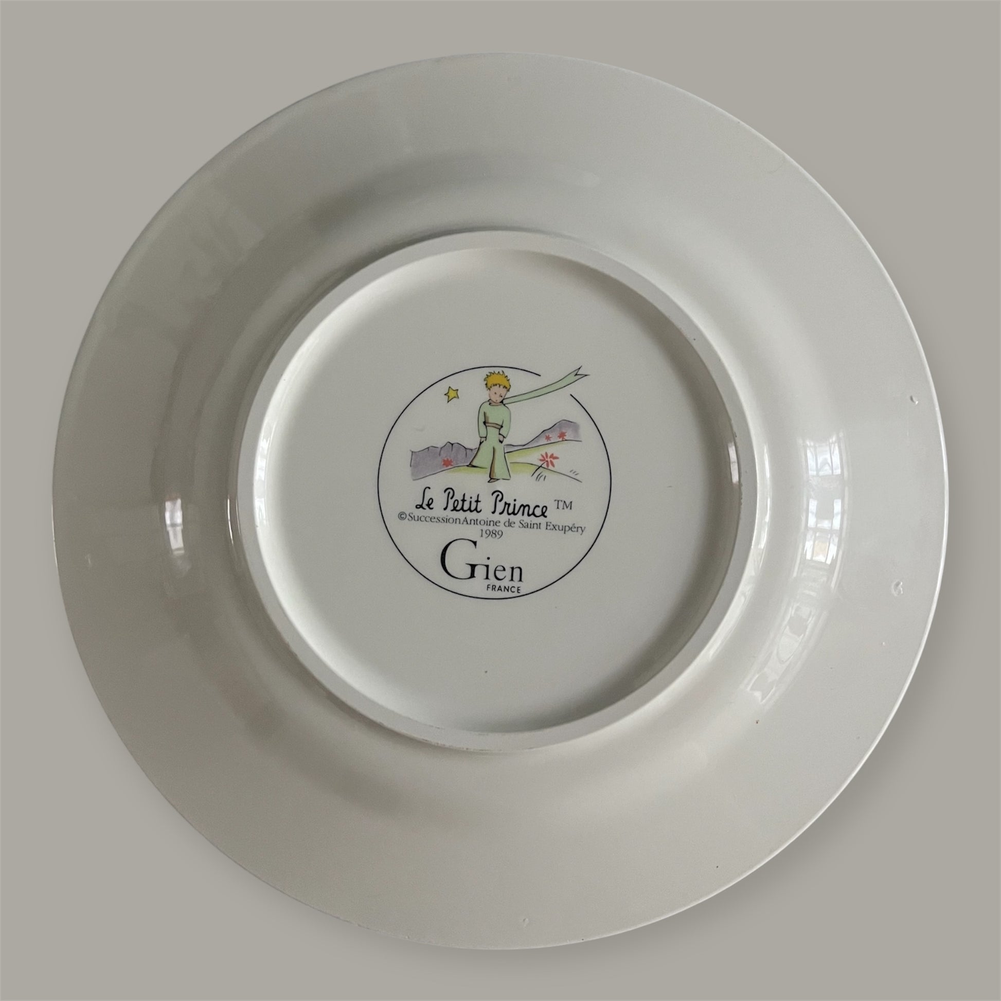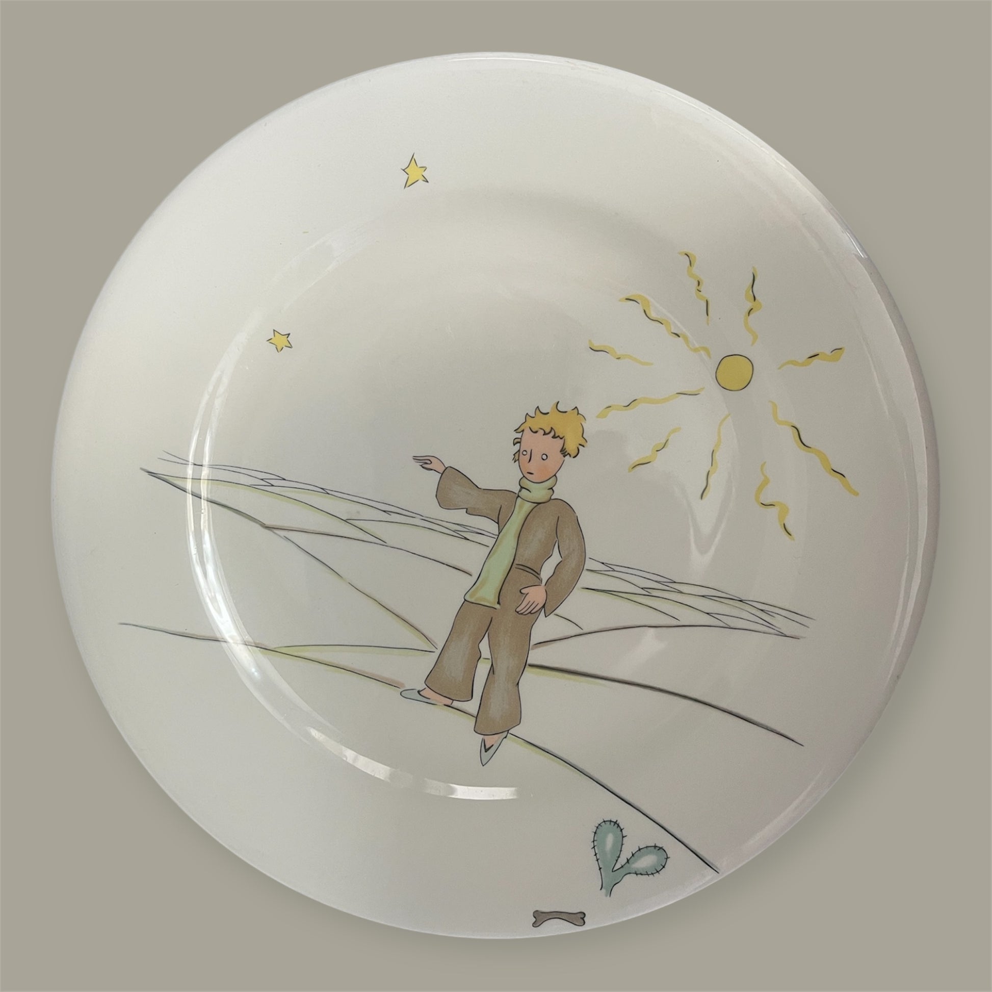 Schattige afbeelding van het kleine prinsje. Dit frans faience bord is een zeldzame vondst uit de collectie. In zeer mooie vintage (productie eind jaren tachtig) staat met lichte gebruik sporen.