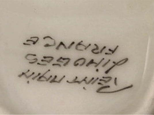 Grappig handtasje met een ketting. Hsndbeschilderd in streep dessin en rozen. Binnenin staat handgeschreven Peint main Limoges France. Circa 4,5 x 4 x 2,5 max cm.