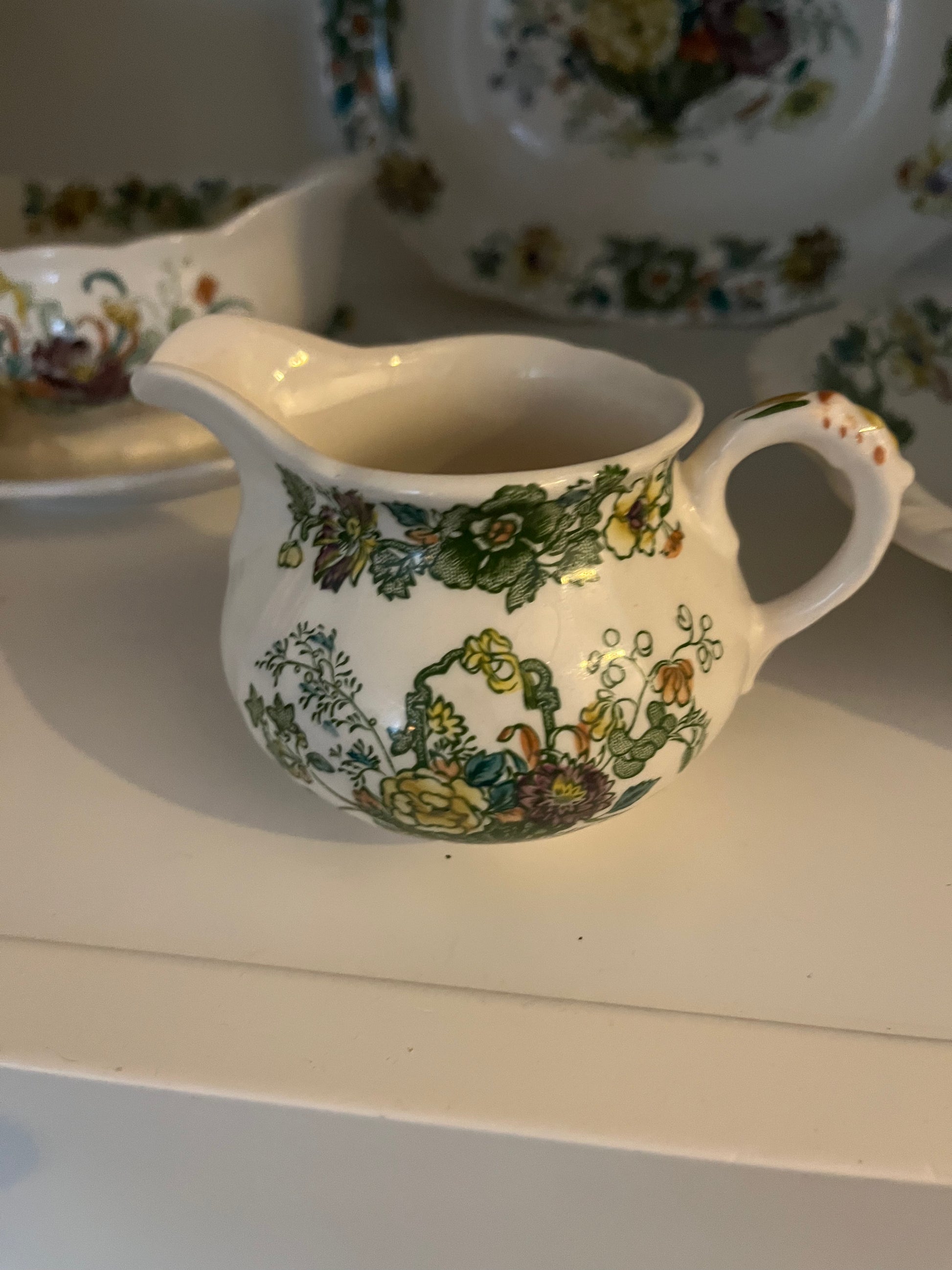 Zeer fraai gevormd en handbeschilderd antiek melk kannetje van het engelse Strathmore servies. In uitstekende staat en schoon van binnen. Strathmore servies lijn.