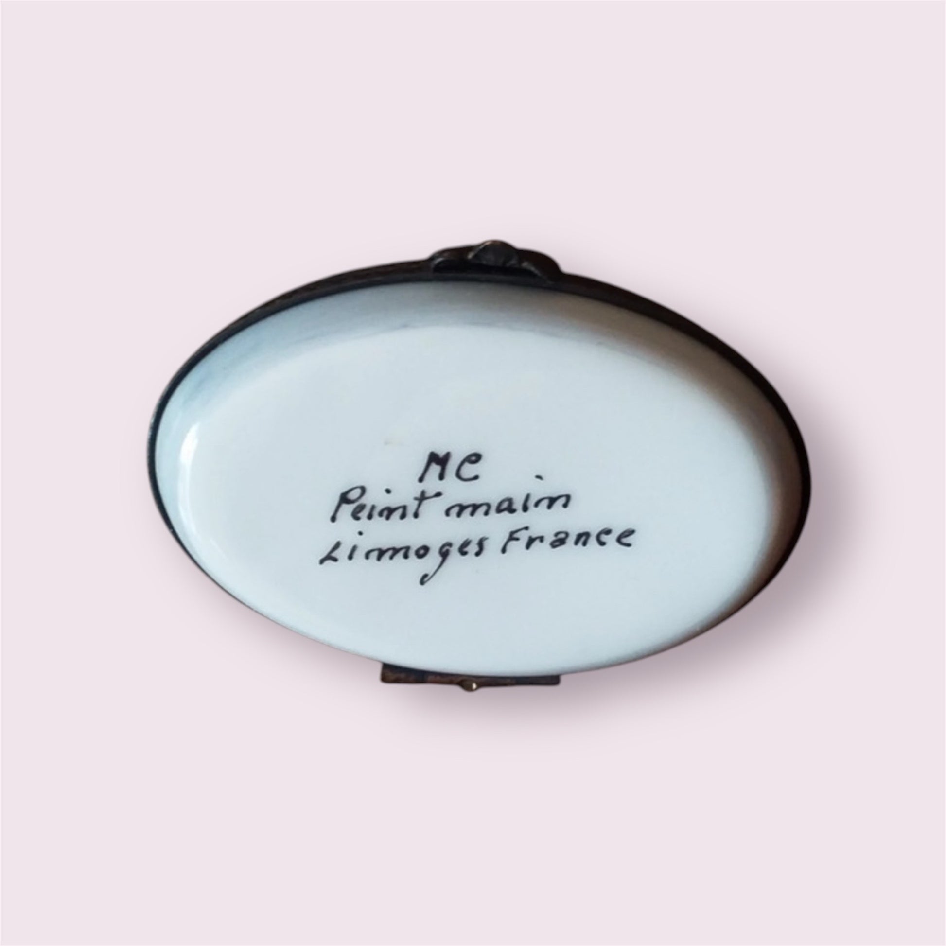 “Peint Main, Limoges France”, “Peint a la Main, Limoges France” or “Décor Main” are a necessary part of the insignia of every French porcelain Limoges box.