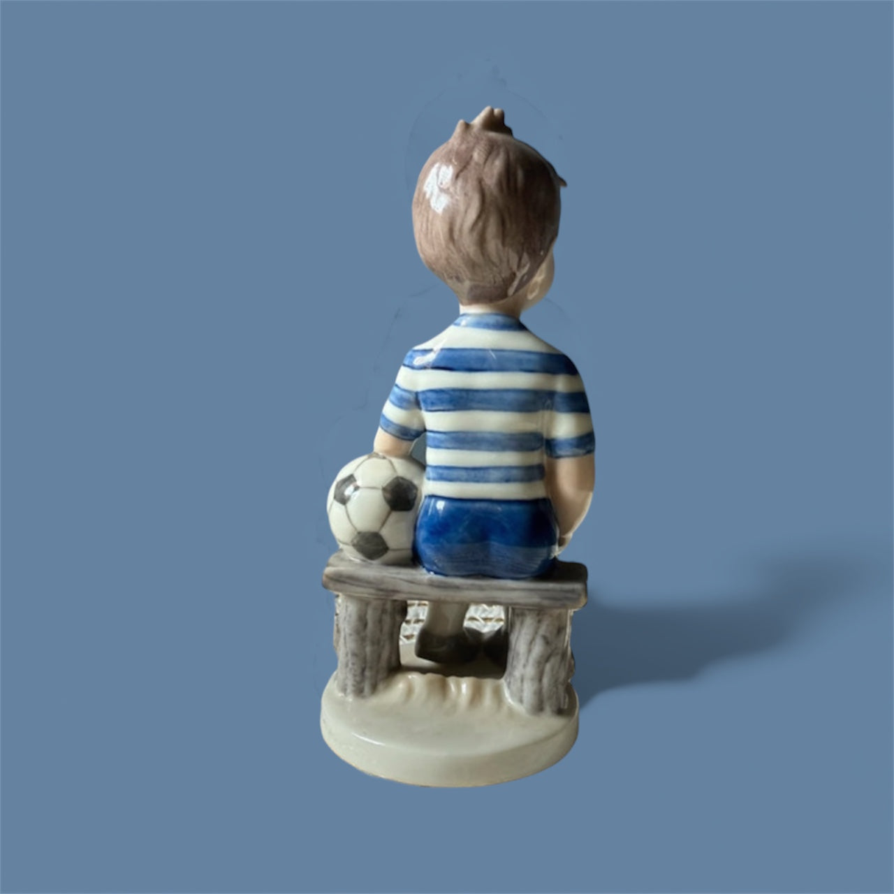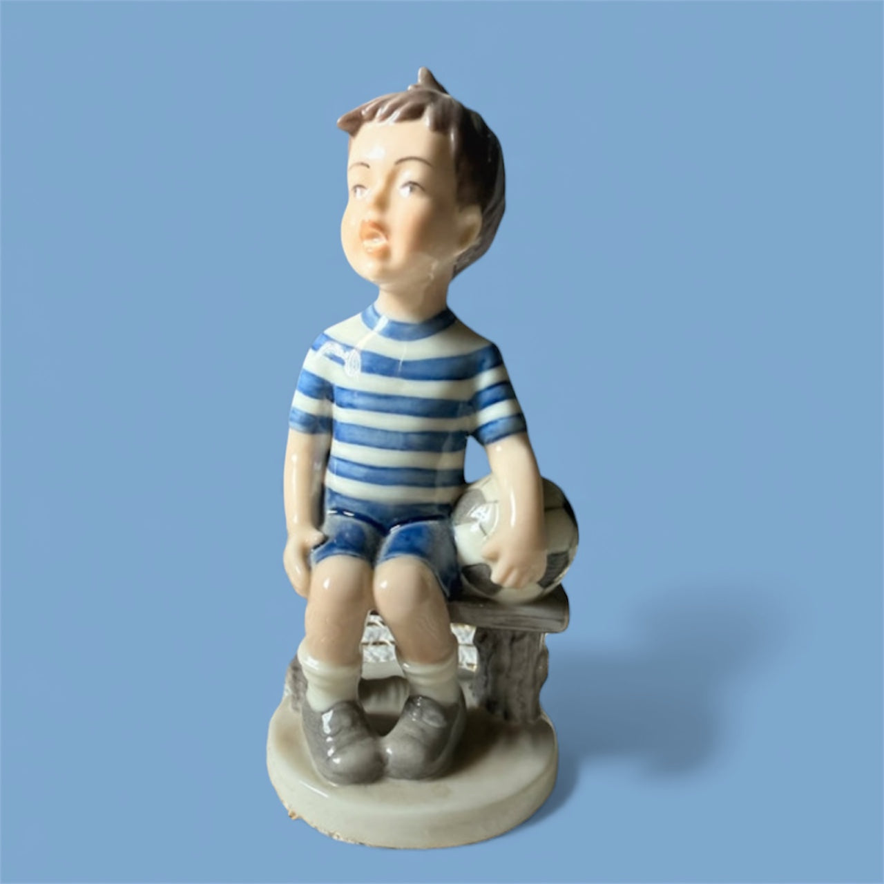Mooi handbeschilderd beeldje van een jongetje met een voetbal. Gelimiteerde oplage. Circa 10,5 cm hoog.