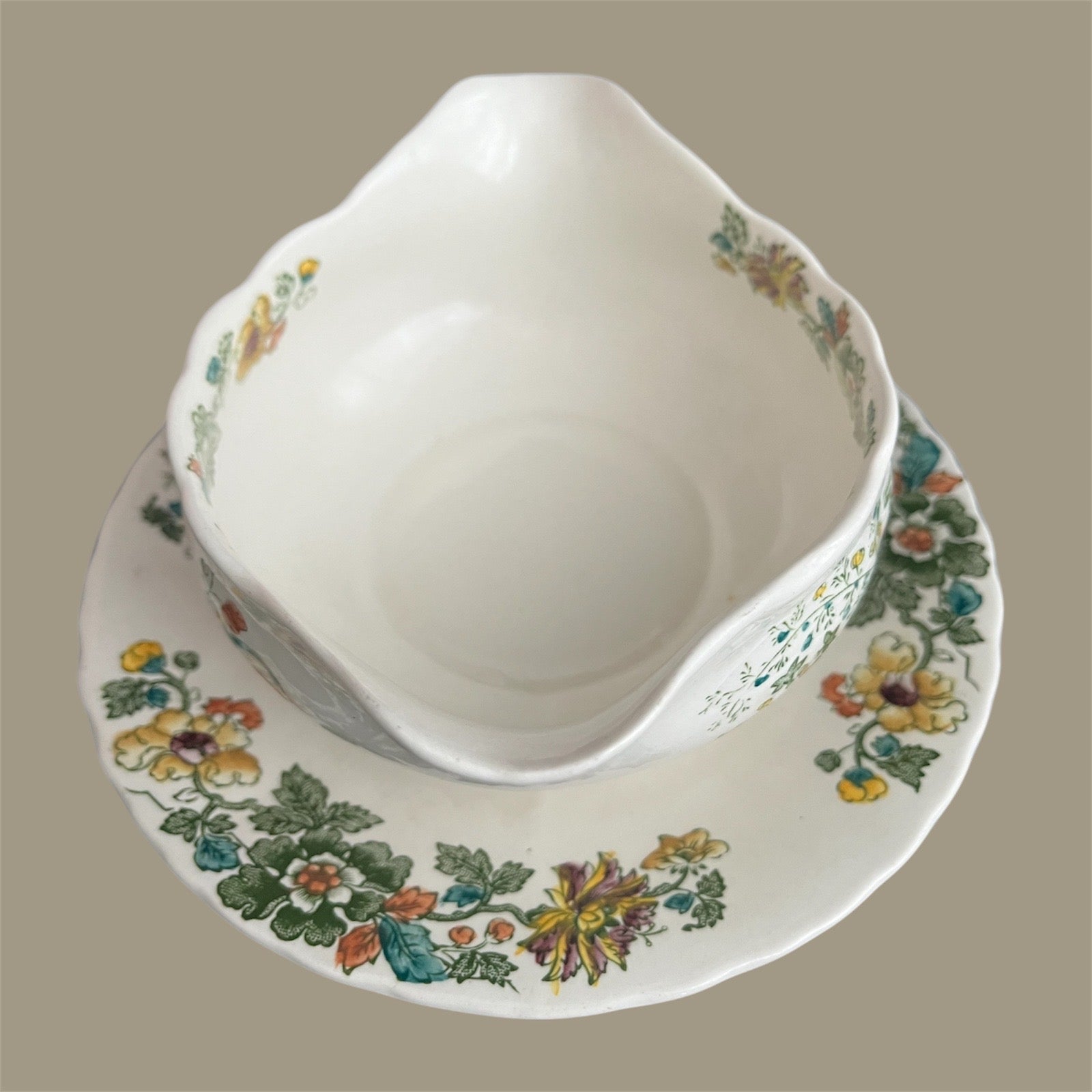 Fantastische gevormde juskom op vaste schotel in geweldige staat. Het gezellige Strathmore decor is handbeschilderd.