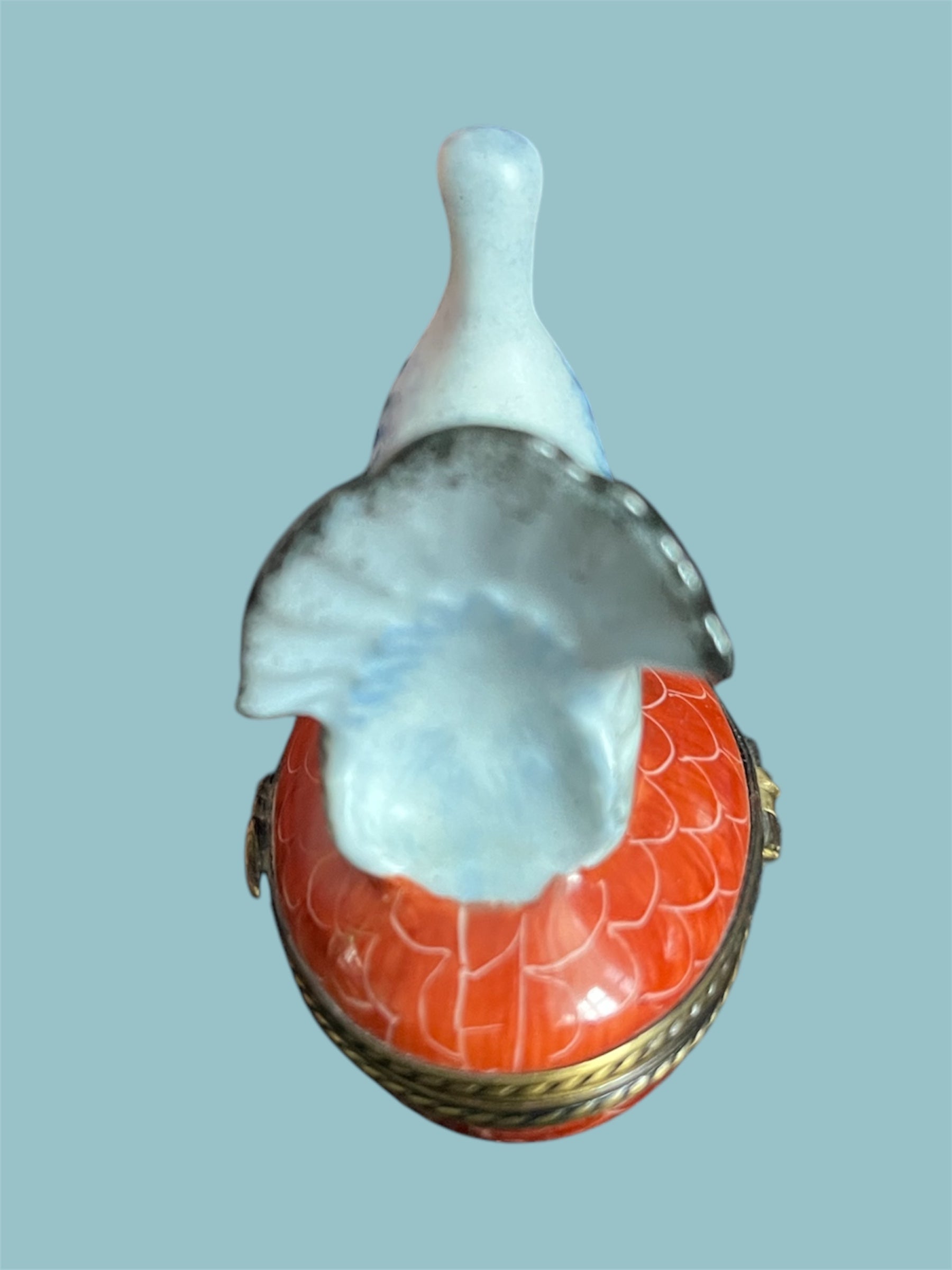 Lovely Limoges oval trincketbox pigeon french handpainted porcelain