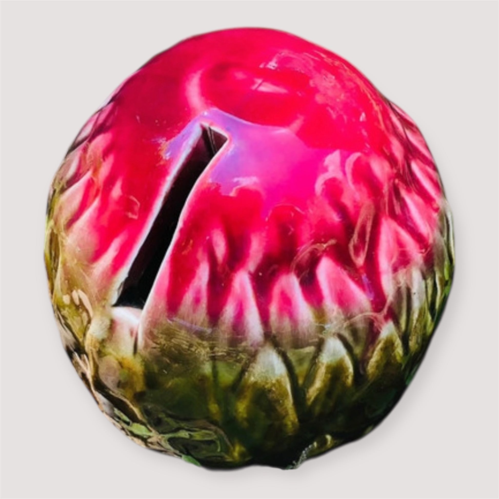 Super leuke oude artisjok spaarpot. Let op, er zat vroeger geen gat onderin om je geld eruit te halen dus werden deze potjes stukgeslagen. Nu dus een waardevol decoratie object in ongeschonden staat.