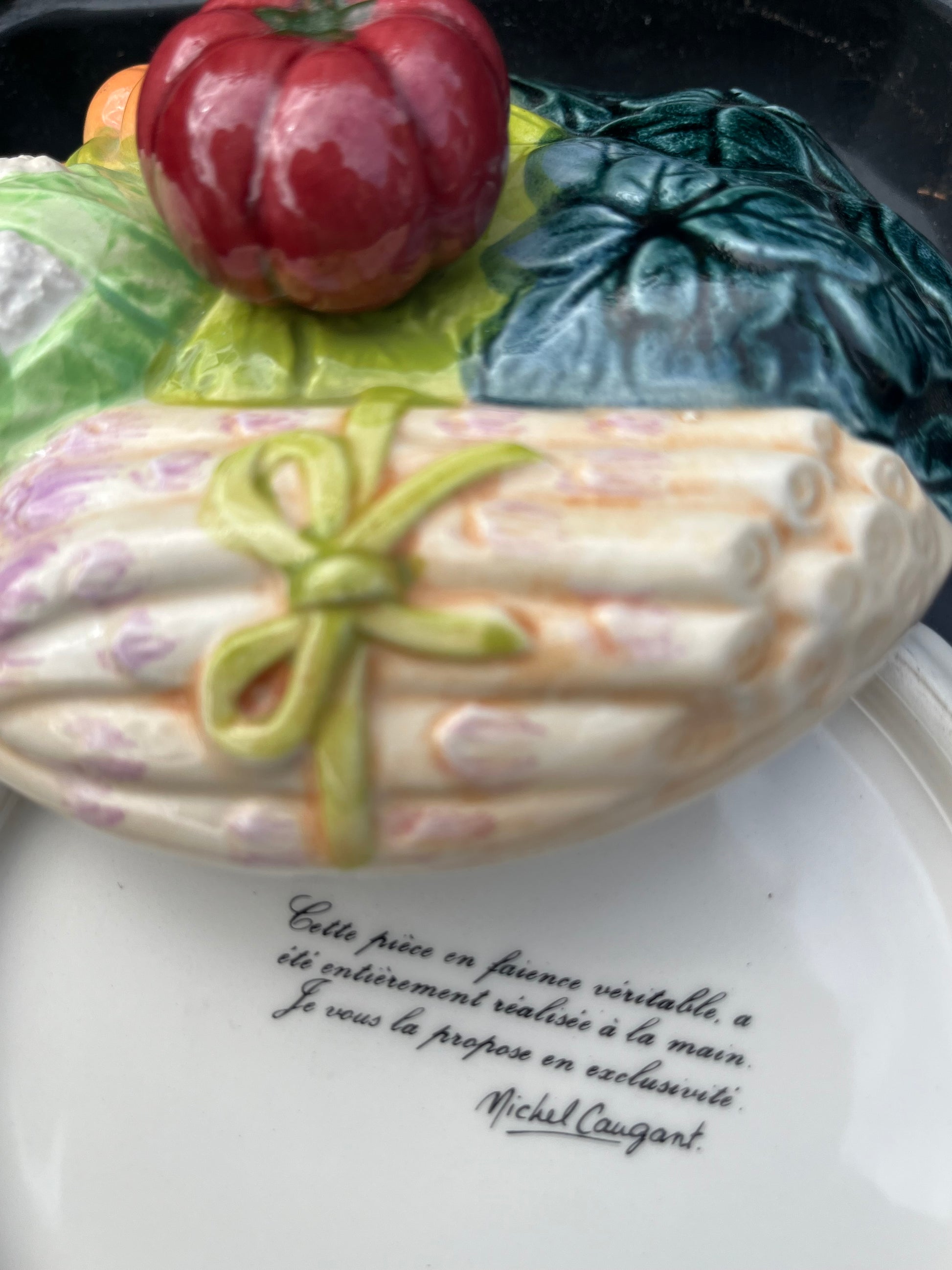 Rare vintage tureen Michel Caugant polychrome vegetables